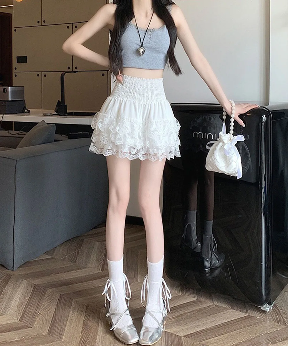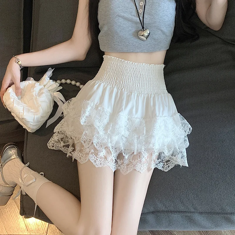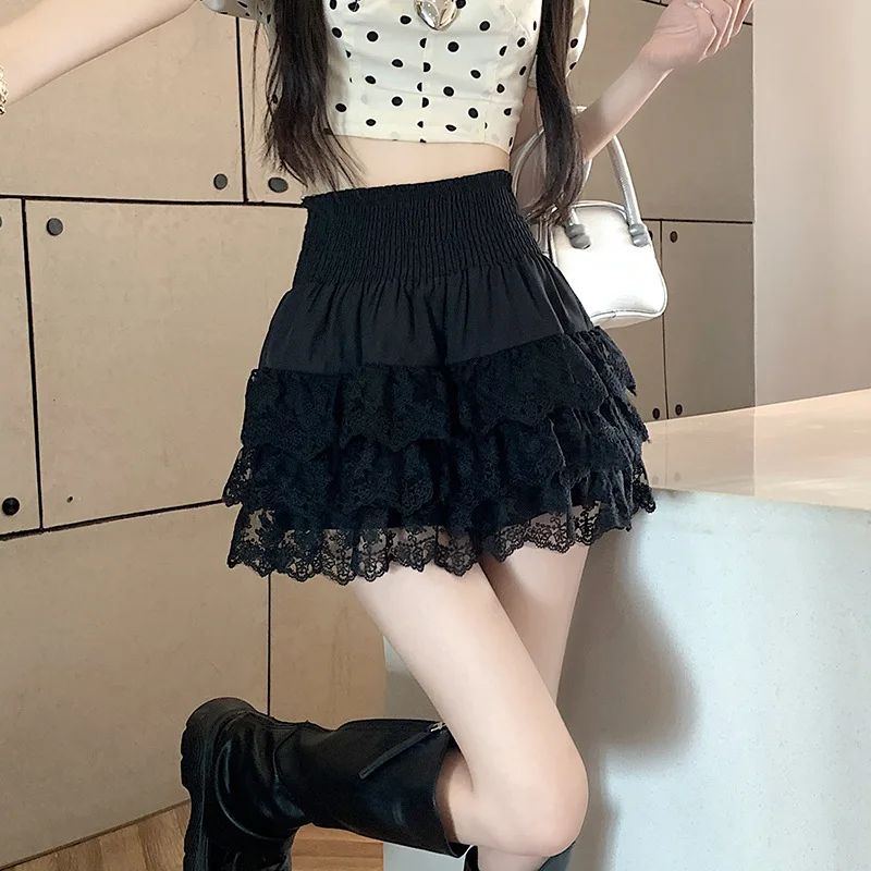 Elastic Lolita Lace Tutu Skirt Women Black Sexy Mini Tulle Skirts Party Club Wear Dancer Mesh Detail Petticoat